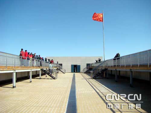 新国门三层是一座过街的瞭望不雅景平台。相当宏伟。把相关的地学学问展现给了泛博旅客。