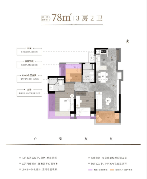 户型是栖身体验的焦点,配备卫生间和衣帽间,实现“口上名校”的希望。户型利用率超100%。